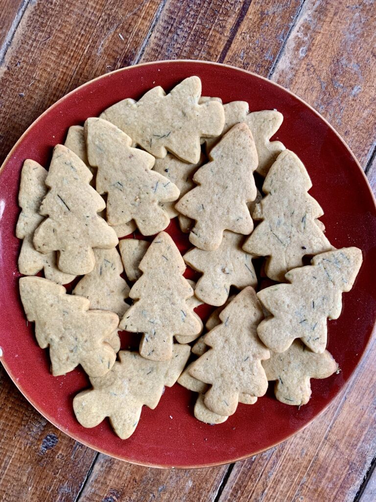 Once you’ve gathered some fresh pine needles, it’s time to get baking! These classic sugar cookies get a subtle, festive twist from the pine, making them the perfect holiday treat for holiday cookie trays.